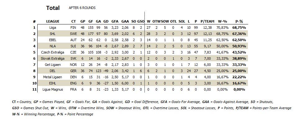 Liigajoukkueiden yhteenlaskettu voittoprosentti alkulohkoissa oli yli 70. Se oli kaikista paras kansallisten sarjojen vertailussa.