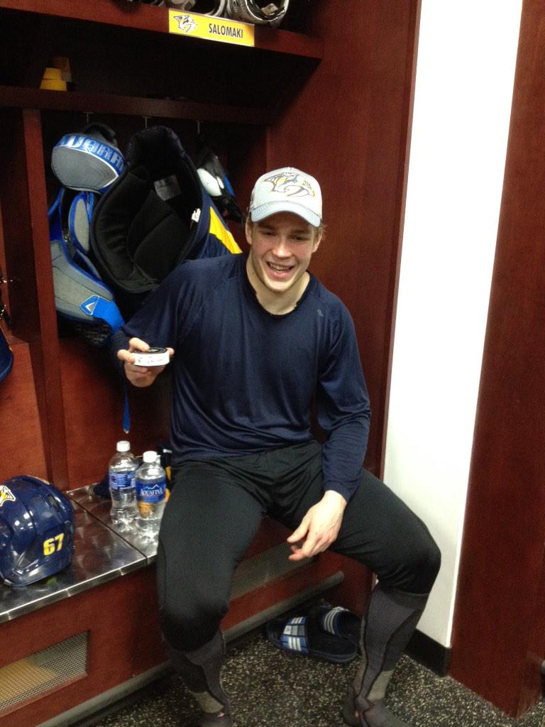Salomäki nostettiin Predatorsin NHL-ryhmän mukaan samalla kun seura laittoi sen kärkihyökkääjiin lukeutuvan James Nealin loukkaantuneiden IR-listalle.