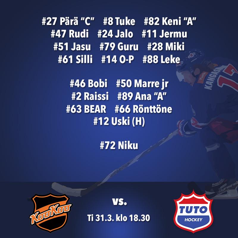 TUTO johtaa välieräsarjaa KooKoota vastaan voitoin 3-1. Finaaleihin tarvitaan neljä voittoa.