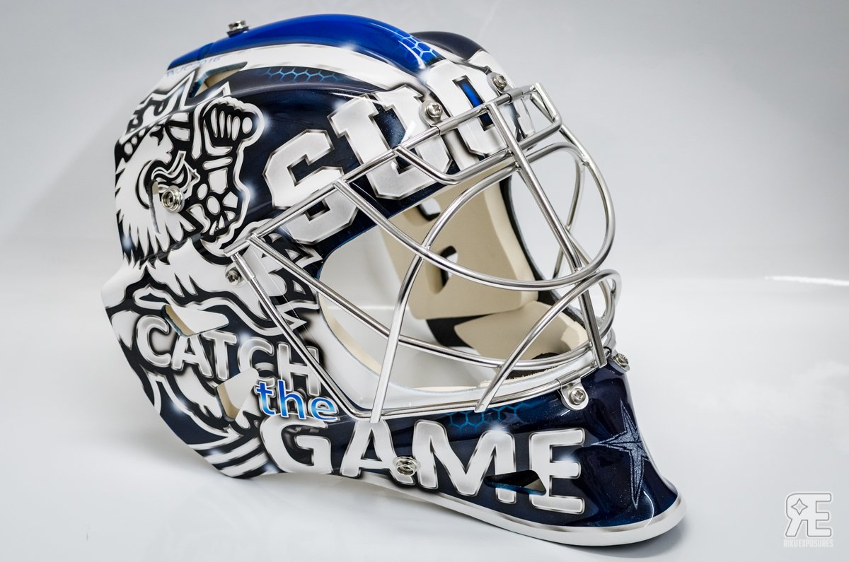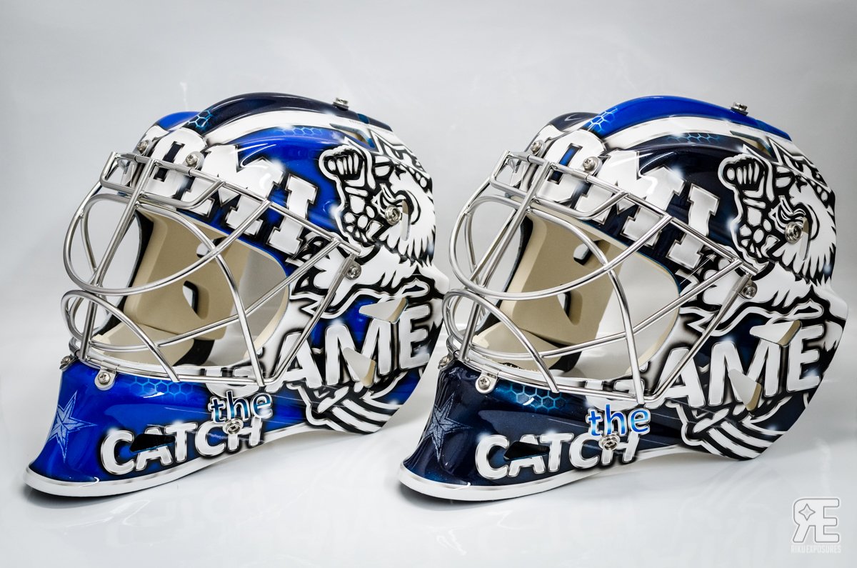 Uunituoreet #U20fi-kisoja varten Suomen maalivahdeille maalatut maskit by #BonaDesigns. Kaunista! #WorldJuniors