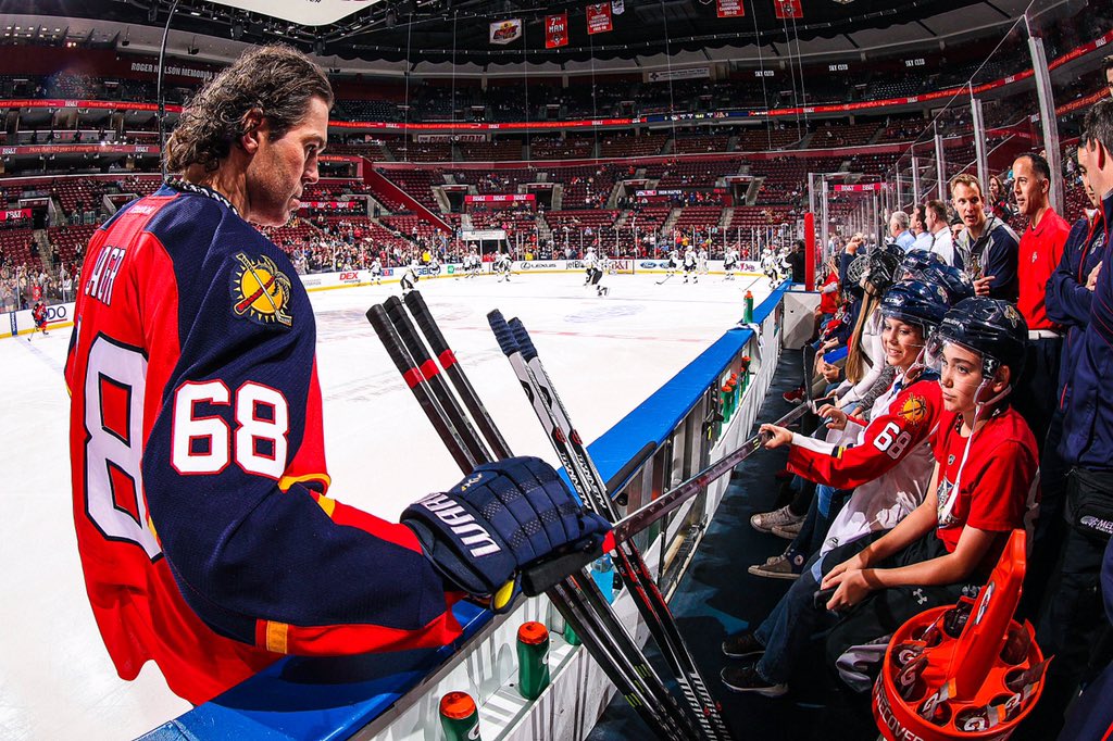 Florida Panthersin tshekkilegenda Jaromir Jagr lahjoitti lauantain ja sunnuntain välisenä yönä Suomen aikaa mailansa pikkupojalle, joka oli päässyt katsomaan Panthersin vaihtoaitoon seuran alkulämmittelyjä ottelussa Pittsburgh Penguinsia vastaan.