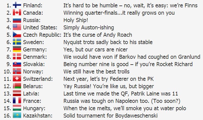 Here's the QF edition of the #IIHFWorlds Power Rankings. Enjoy :-) iihfworlds2016.com/en/news/power-…
