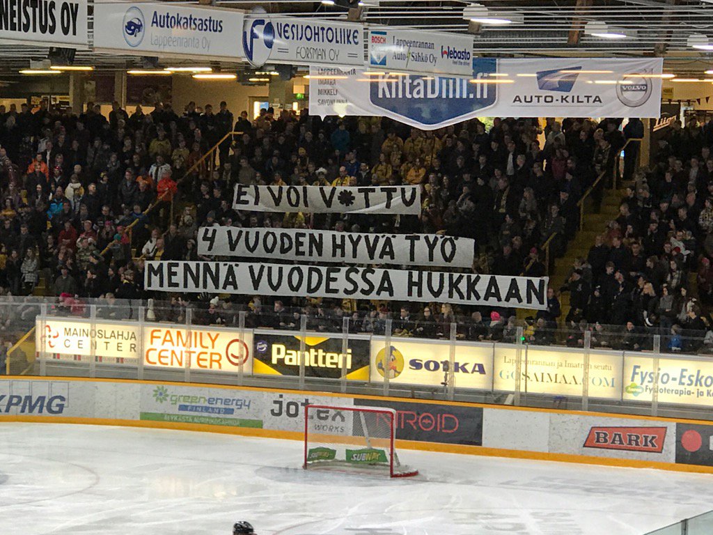 Edellisen ottelun se hävisi 7-1 KooKoo:ta vastaan. Lauantai-illan kamppailussa TPS:ää vastaan seuran kannattajat kertoivat lakanoilla mielipiteensä tästä kaudesta.