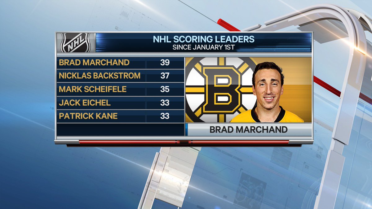 Marchand on tehnyt tammikuun 1. päivästä lähtien peräti 39 tehopistettä. Seuraavaksi eniten pisteitä siitä lähtien on tehnyt Washington Capitalsin ruotsalaissentteri Nicklas Bäckström 37:llä pisteellään.