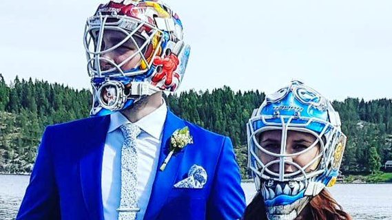 Ruotsalainen NHL-vahti ja tuore vaimo maskit päässä häissään – katso hulvaton kuva!