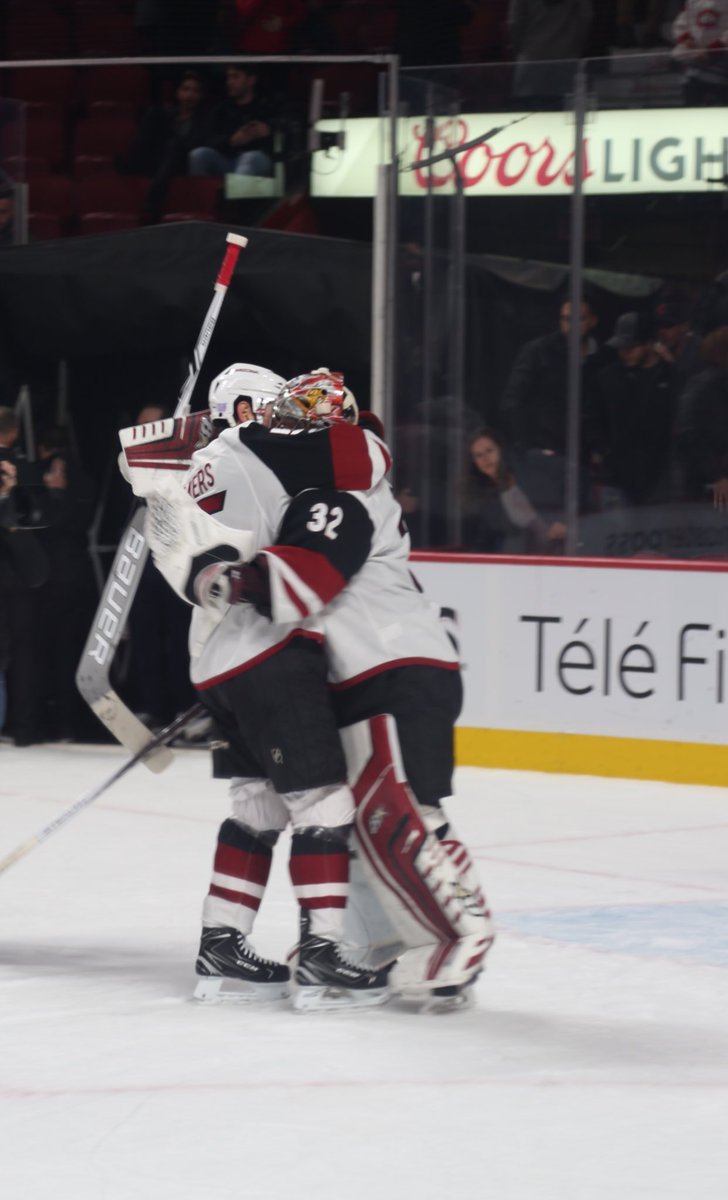 Alla myös Coyotesin twitter-tilin Raanta-hehkutus sekä voittotuuletus.