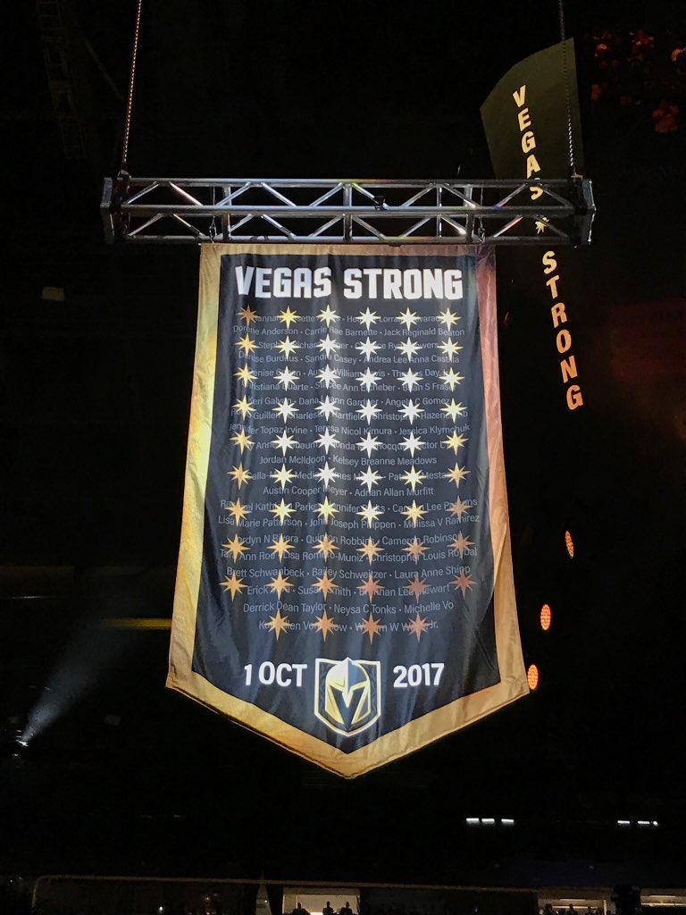 Ennen ottelua Vegas suoritti tunteikkaan seremonian. Seura halusi kunnioittaa syksyllä traagisessa ampumavälikohtauksessa kuollutta 58 henkilöä ja nosti heidän kunniakseen viirin T-Mobile Arenan kattoon. Samalla seura tiedotti, ettei enää yksikään Golden Knights -pelaaja tule käyttämään kyseistä numeroa pelipaidassaan.