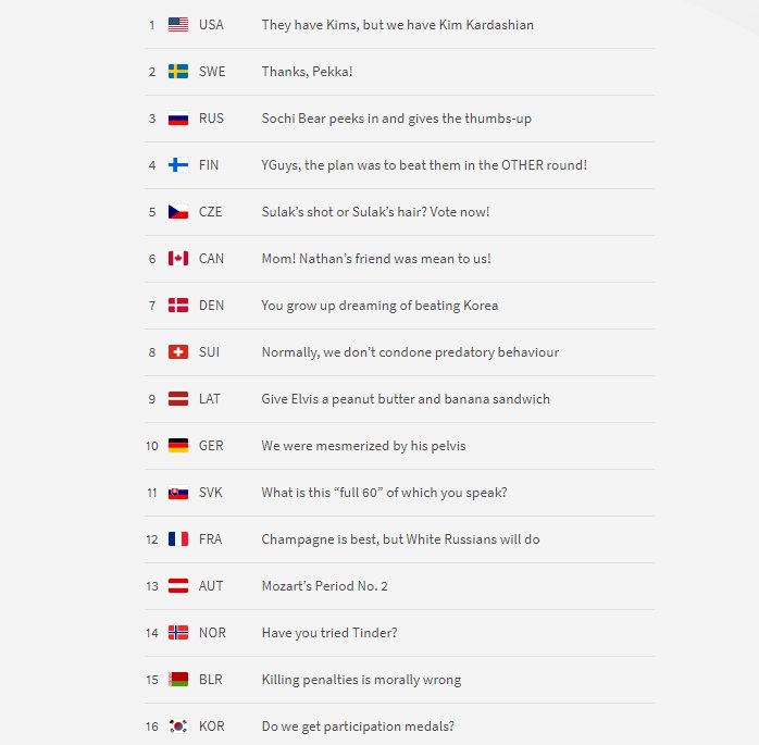 Team USA (@usahockey) lands at the top of our latest list of power rankings. Because Kardashians + hockey = ______________