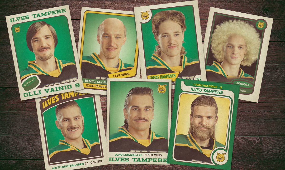 Brändityöryhmämme näki @TSN_Sports in #vintagehaircut-kuvat ja päätimme kokeilla miltä Ilveksen pelaajat näyttävät Old Time Hockey -teemoitetuissa kuvissa.