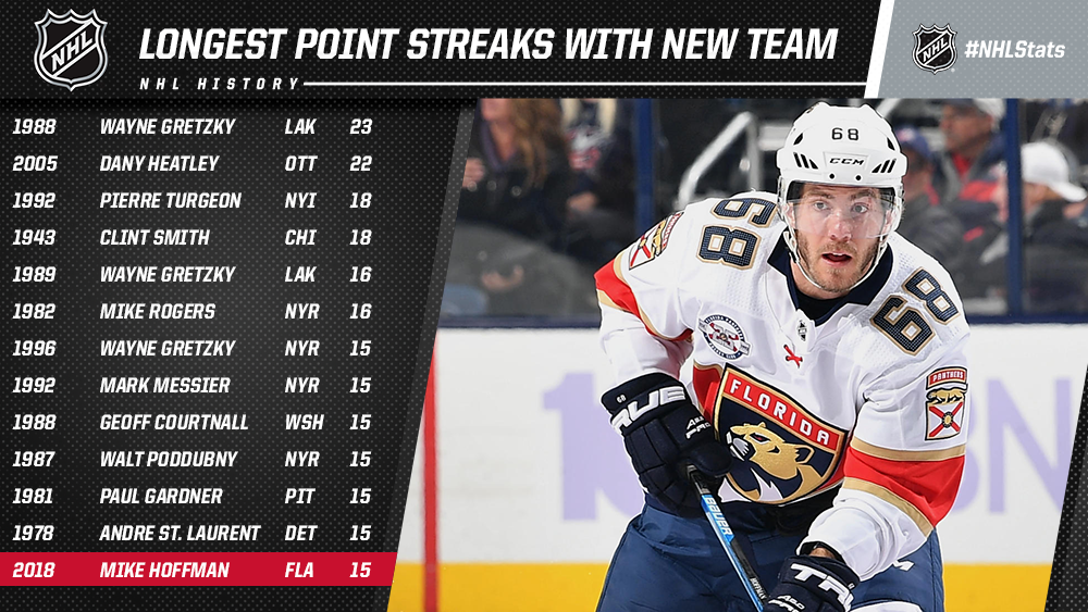 Mike Hoffman on tehnyt Florida Panthersin riveissä seurahistoriaa.