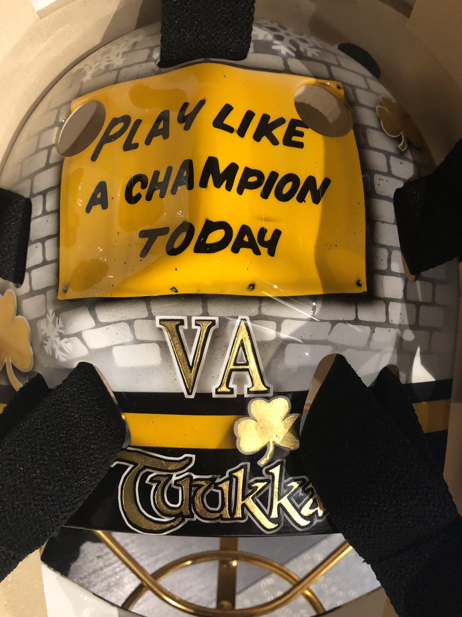 Bruinsin aloittavan maalivahdin nimi ei ole vielä tiedossa, mutta joukkue julkaisi Twitter-tilillään perjantaina seuran suomalaisvahti Tuukka Raskia varten tehdyn maskin.