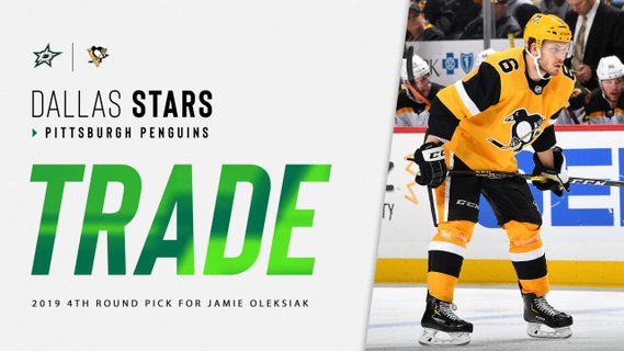 The Dallas Stars have acquired defenseman Jamie Oleksiak from the Pittsburgh Penguins in exchange for a fourth-round pick in the 2019 NHL Draft. nhl.com/stars/news/dal…