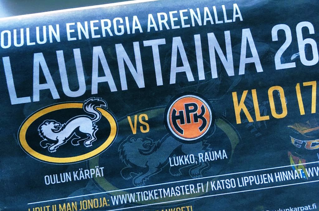 Kärppien kotiottelun mainos lauantain HPK:ta vastaan ei mennyt ihan putkeen. Mainoksessa oli vastustajan logo oikein, mutta alla luki teksti: Lukko, Rauma.