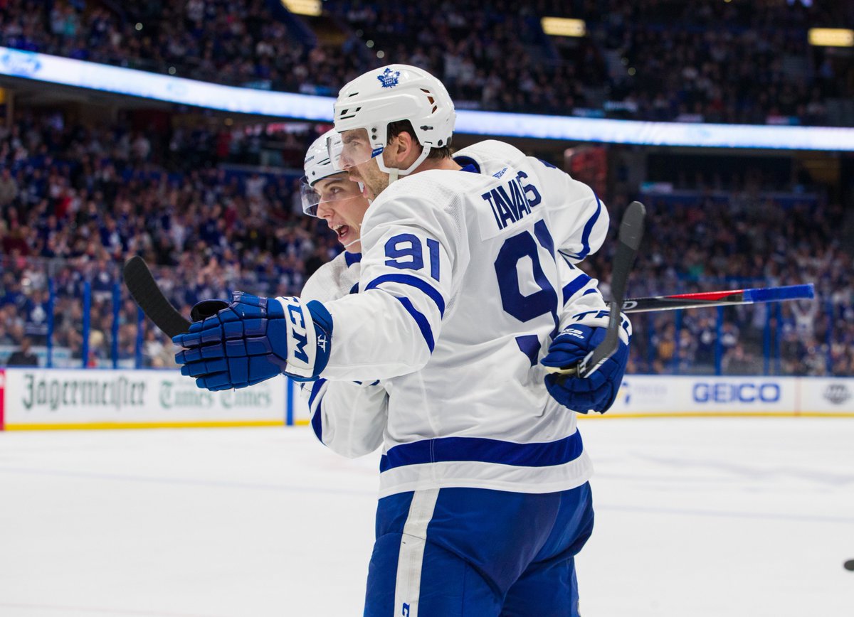 John Tavares (41-40—81) and Mitch Marner (25-61—86) are the first @MapleLeafs duo to each record 80 points in a season since Dave Andreychuk (53-46—99 in 83 GP) and Doug Gilmour (27-84—111 in 83 GP) in 1993-94. #NHLStats #TORvsBUF