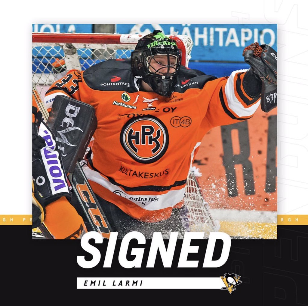 Tapparaan taannoin siirtynyt tuore Suomen mestari Emil Larmi ei todennäköisesti torju oranssipaidoissa yhtäkään peliä. Itsensä tähtiin tällä kaudella pelannut vahti kirjoitti sunnuntaina Pittsburgh Penguinsin kanssa kahden vuoden diilin.