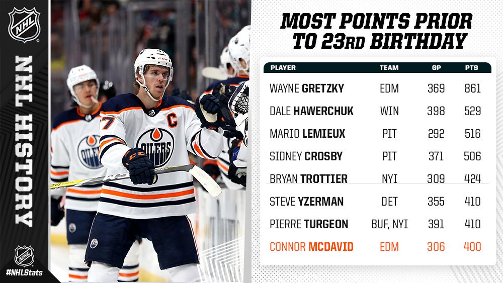 Only seven other players in NHL history have reached the 400-point mark before their 23rd birthday. #NHLStats