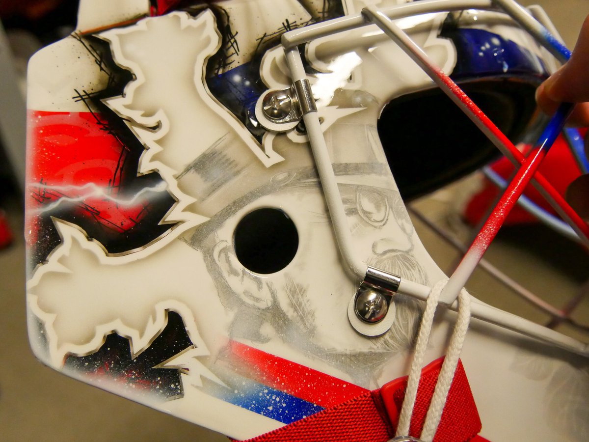 Tällä kertaa kypärää koristaa hieman toisenlainen kissapeto kuin Liigassa, sillä siihen on maalattu leijona.