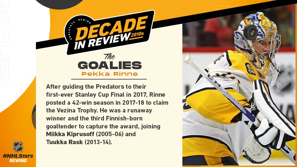 Nashville Predatorsin seuralegendoihin itsensä vuosien saatossa torjunut Pekka Rinne lukeutuu pian päättyvän vuosikymmenen kestotähtiin NHL:n maalivahtirintamalla.