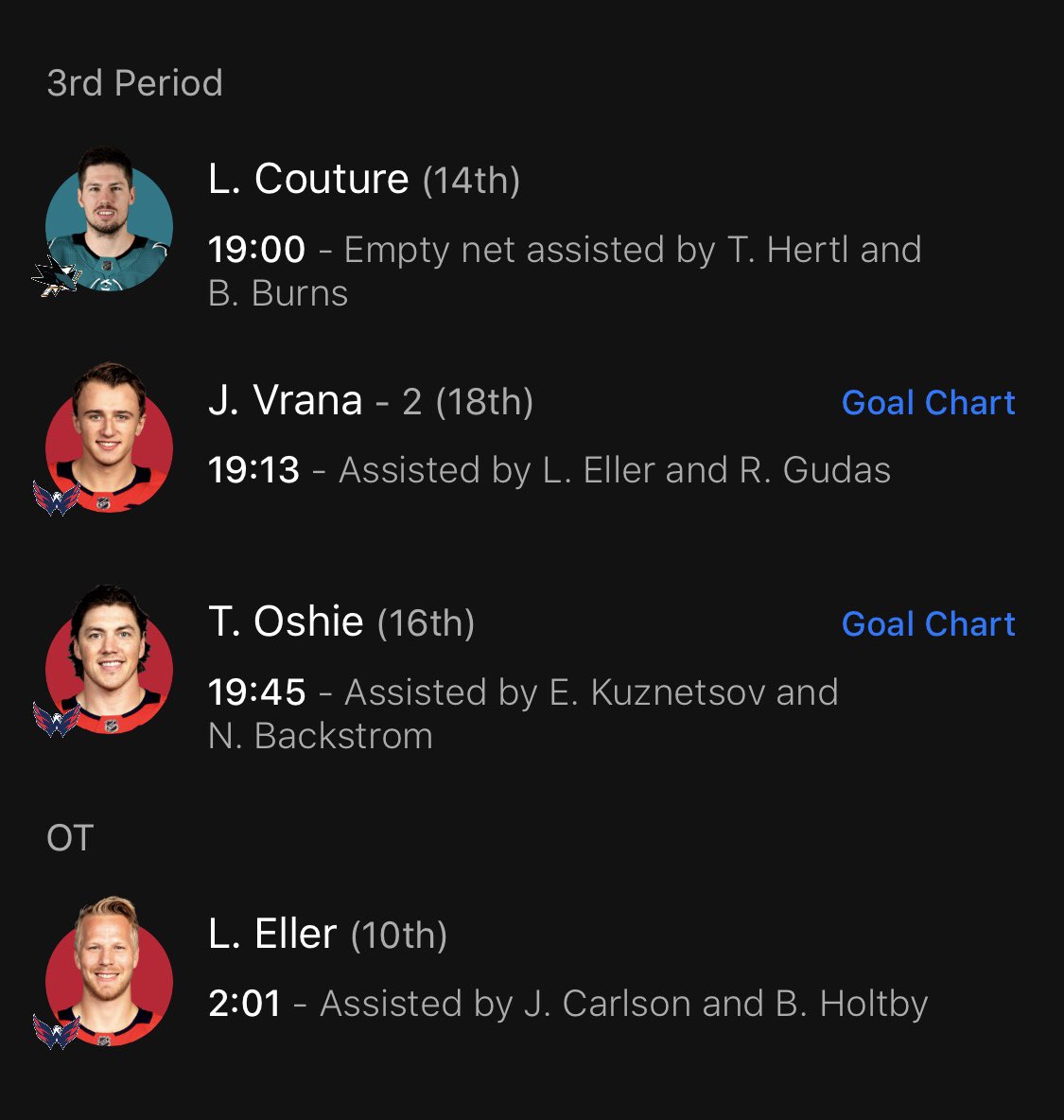 Viime yönä San Jose Sharks johti ottelua Washington Capitalsia vastaan jo 4-2 lukemin. Washington onnistui kuitenkin tasoittamaan ottelun minuutissa.