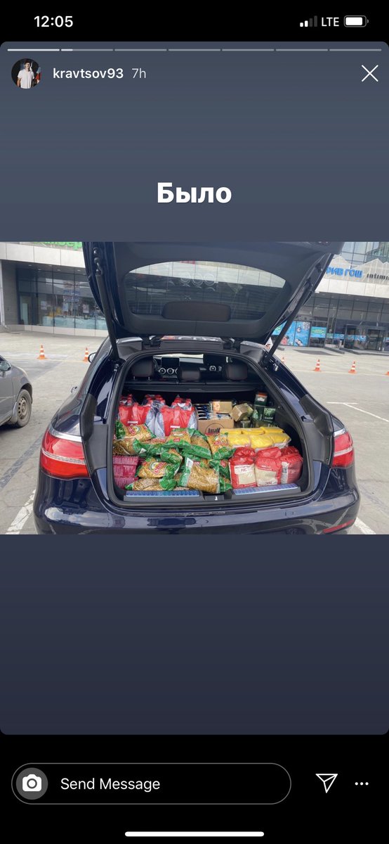 Kravtsov jakoi Instagram-tarinallaan kuvia elintarvikkeilla kukkuroilleen täytetystä auton takakontista.