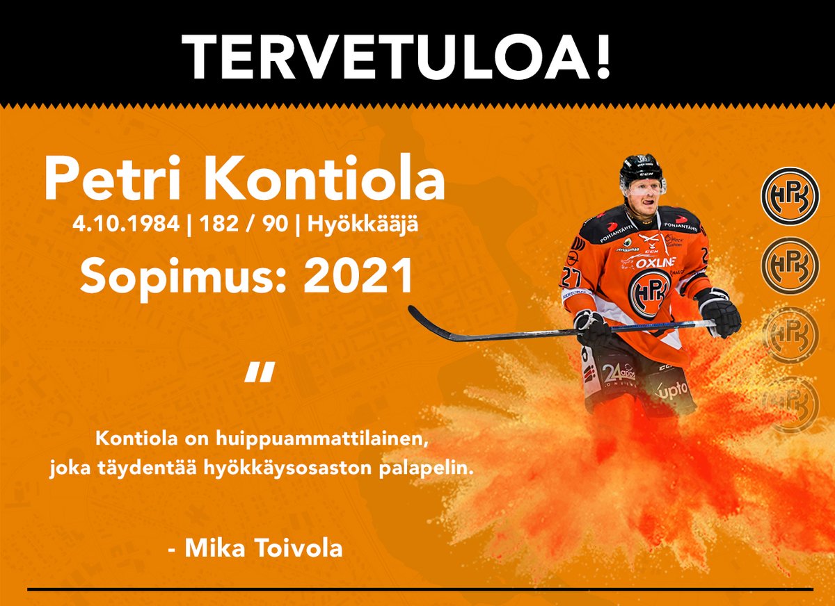 HPK on solminut yksivuotisen sopimuksen 35-vuotiaan Petri Kontiolan kanssa. 11 viimeistä kautta KHL:ää pelannut Kontiola liittyy HPK:n joukkueeseen elokuun viimeisenä päivänä. Kahdet olympialaiset sekä kuudet MM-kisat pelannut hyökkääjä on HPK:n urheilujohtaja Mika Toivolan mukaan tältä erää viimeinen pala hyökkäykseen. – Petri on pelaaja, joka on parhaimmillaan juuri silloin, kun on pakko olla hyvä ja hän pystyy kantamaan vastuuta tärkeillä hetkillä. Hän tuo peliimme Suomen kärkilaatua molempiin suuntiin pelatessa ja nimenomaan niissä hetkissä, kun joukkue sitä tarvitsee. Hyökkäyspeliin Petri tuo tarvittavan pelikäsityksen sekä kiekollisen osaamisen, jotta saamme hyökkäyspeliämme kehitettyä tehokkaammaksi. Olympiamitalistin päätös jäädä Suomeen ja tulla HPK:hon oli lopulta helppo. – Viime kauden jälkeen päätin, että en halua enää lähteä ulkomaille pelaamaan. Poikkeustilan vuoksi olen odottanut hieman pidempään pelipaikan kanssa. Nyt on oikea aika liittyä joukkueen mukaan, kun nähtävissä on, että kausi päästään aloittamaan. Kun oli selvää, että pääsemme HPK:n kanssa sopimukseen, päätös oli helppo ja virtaa tuli heti lisää. Todella innoissani tulen takaisin Liigaan. Kontiolan täydennettyä hyökkäysosaston, jatkossa Toivolan työ keskittyy puolustuspään vahvistamiseen. – Joukkue tarvitsee seuraavaksi hyvin liikkuvan puolustajan, joka pystyy pelaamaan isot minuutit, ottamaan vastuuta alivoimalla ja puolustamaan omaa maalia.