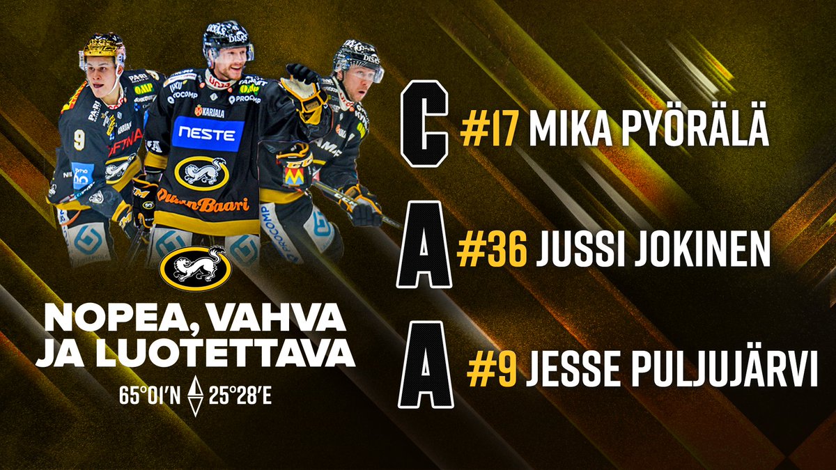 Kapteenin C-kirjainta kantaarinnassaan kokenut Mika Pyörälä, eikä varakapteenin A-tunnusta kantava Jussi Jokinenkaan liene kenellekään yllätys.