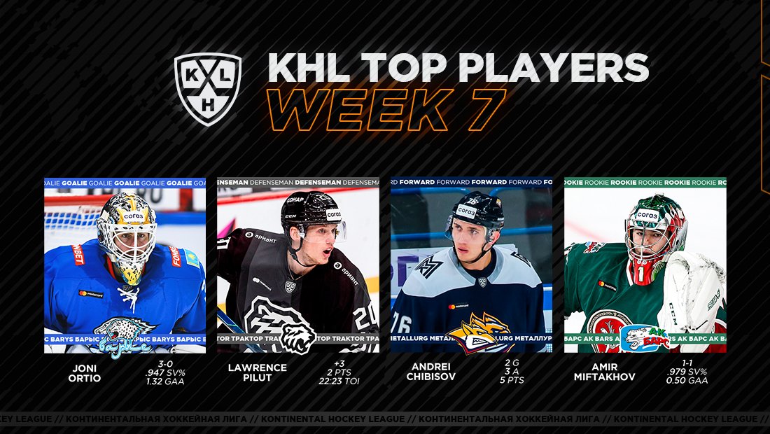 KHL:n nimeämien viikon parhaiden pelaajien joukosta löytyy jälleen suomalaisväriä, kun Barys Nur-Sultanin Joni Ortio on valittu päättyneen viikon parhaaksi maalivahdiksi.