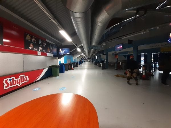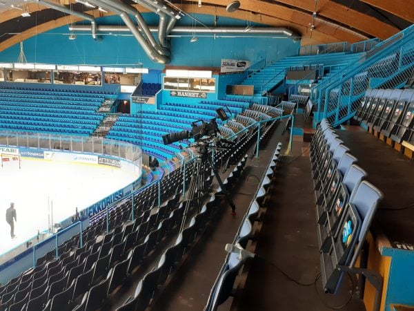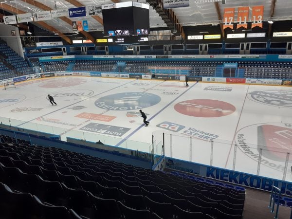 Yleisötön halli on kaikin puolin kummallinen näky, kun samaan aikaan ämyreistä pauhaavat kuulutukset, mainokset, musiikki ja muu asiaankuuluva. Pelaajien huudot kuuluvat ylähyllylle, mediapaikoille totta kai selvän helposti.