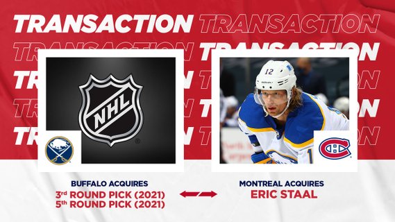 Vaihtokaupassa Sabres lähettää keskushyökkääjä Eric Staalin Montrealiin, kun taas vastikkeena Buffaloon siirtyvät kolmannen (2021) ja viidennen kierroksen varausvuorot (2021).