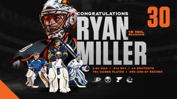 Maalivahtilegenda Ryan Miller päättää huikean peliuransa tähän kauteen.