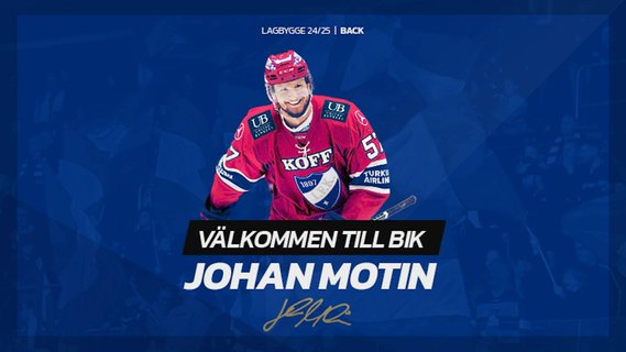 Ruotsin toiseksi korkeimmalla sarjatasolla pelaava BIK Karlskoga tiedottaa solmineensa kaksivuotisen sopimuksen Motinin kanssa.