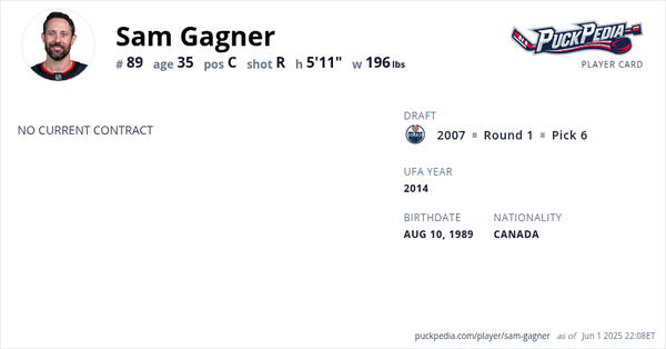 Kokenut kanadalaishyökkääjä Sam Gagner, 35, tavoittelee uusista maisemista NHL-sopimusta. PuckPedia kertoo, että Carolina Hurricanes on solmimassa try out -sopimuksen Gagnerin kanssa.