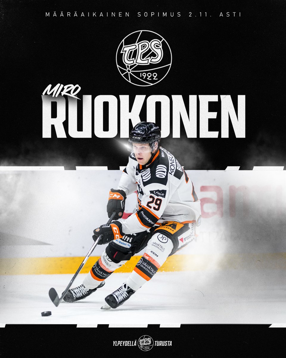 TPS on tehnyt määräaikaisen sopimuksen hyökkääjä Miro Ruokosen kanssa. Sopimus on voimassa 2. marraskuuta asti.