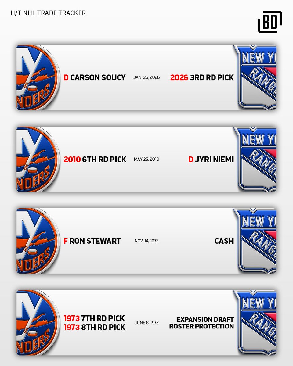 New York Rangers ja New York Islanders tekivät vaihtokaupan NHL:ssä. Rangersin puolustaja Carson Soucy siirtyi Islandersiin, kun taas vastineeksi Rangers sai 3. kierroksen varausvuoron tulevan kesän varaustilaisuuteen.