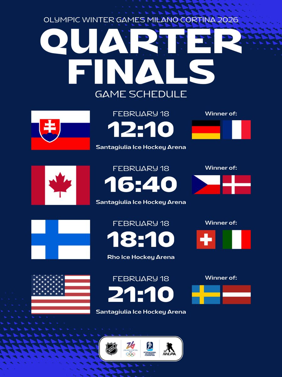 Kaikki puolivälierät pelataan keskiviikkona. Suomi kohtaa voittajan otteluparista Sveitsi-Italia. Puolivälierät pelataan seuraavasti (kellonajat Suomen aikaa):